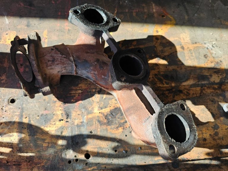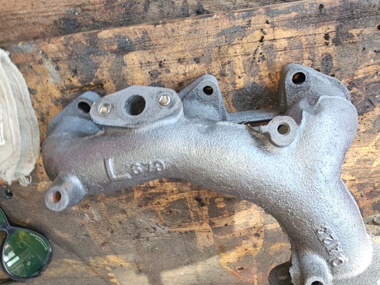 Der Abgsakrümmer der linken Bank hat nicht nur mit äußerlichem Rost sondern auch mit Verkokungen auf der Innenseite und der ein oder anderen abgerissenen Schraube zu kämpfen.